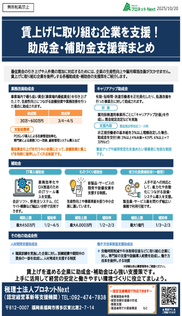 賃上げに取り組む企業を後押しする各種助成金・補助金の支援策をご紹介します。