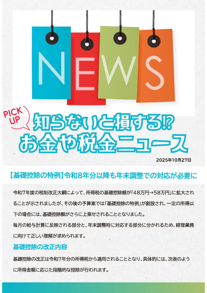 所得税の基礎控除額が「48万円→58万円」に拡大されることが示されました。